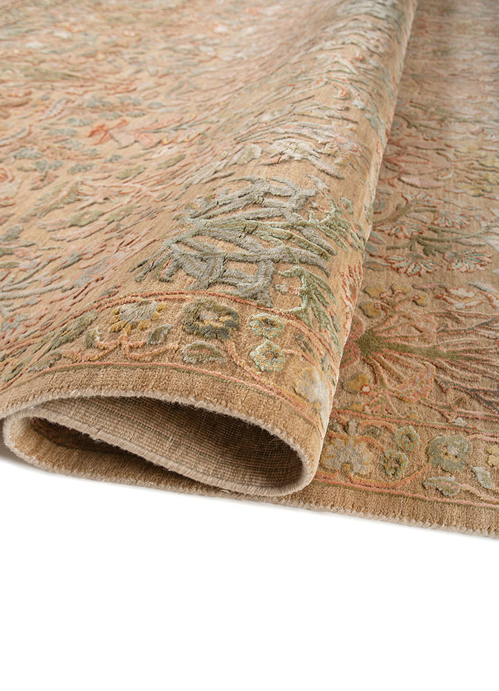 Hand-knotted out of wool and silk, the timeless rugs from the Aurora collection feature traditional oriental motifs, patterns, and designs. These rugs with floral motifs in traditional border design, as found in oriental carpets, preserve the design and weaving skills from another era. Available in a spectrum of colors and shades, with a pearl-like sheen inspired from natural gemstones, the Aurora collection will bring life to any space with its beauty and vividness.