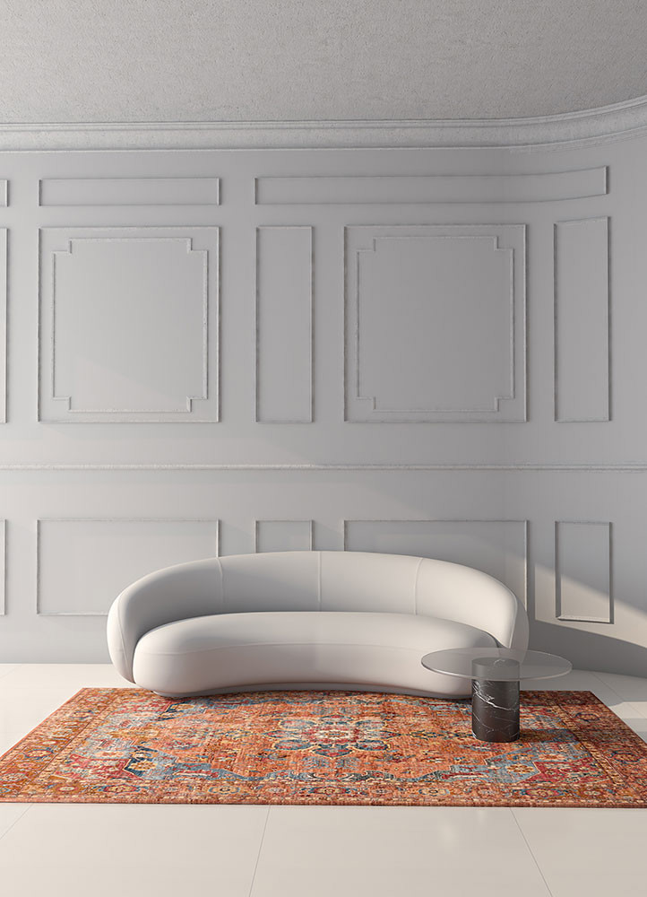 A magnificent display of an alternate evolution, merging heritage and modern lifestyle. The wool, born of the relentless afghani, bearing the harsh region for generations past with a conviction to survive. The yarn, groomed and adorned by tradition, uncarded, spun on a latoo by the hands of the ancients. Its colors are raw and unseparated, dyeing the yarn only within reach. The knots, each a hand-crafted journey, preserving heritage for the future. All these come together to form Someplace in Time - a collection whimsically reviving a lost era in vintage design and craft. Explore this exquisite range of rugs for a decor that is truly a class apart!