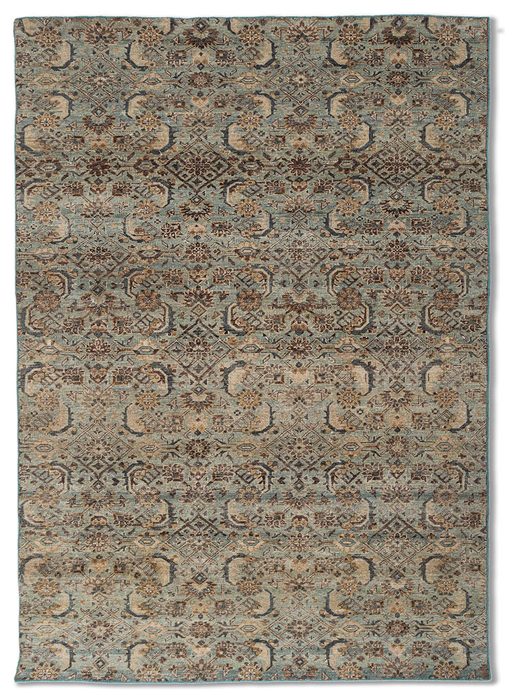 A magnificent display of an alternate evolution, merging heritage and modern lifestyle. The wool, born of the relentless afghani, bearing the harsh region for generations past with a conviction to survive. The yarn, groomed and adorned by tradition, uncarded, spun on a latoo by the hands of the ancients. Its colors are raw and unseparated, dyeing the yarn only within reach. The knots, each a hand-crafted journey, preserving heritage for the future. All these come together to form Someplace in Time - a collection whimsically reviving a lost era in vintage design and craft. Explore this exquisite range of rugs for a decor that is truly a class apart!