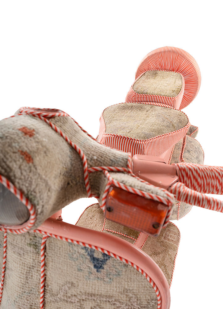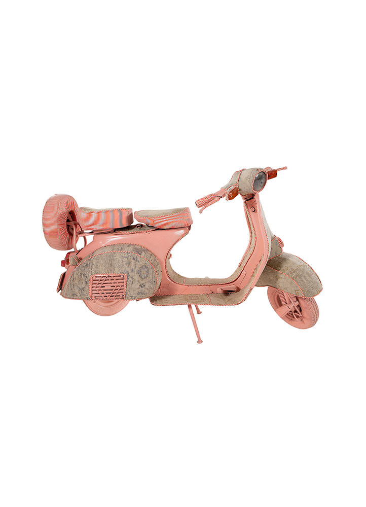 The Memoir on Wheels is a metaphoric representation of the first ride many entrepreneurs relied on during the retro era. Beautifully wrapped in vibrant, woven rugs, it stands as an art installation, evoking nostalgia for a time when ambition and style met on the open road. This display piece captures the spirit of entrepreneurship, honoring the past while inspiring future generations with its timeless design and artistic charm.