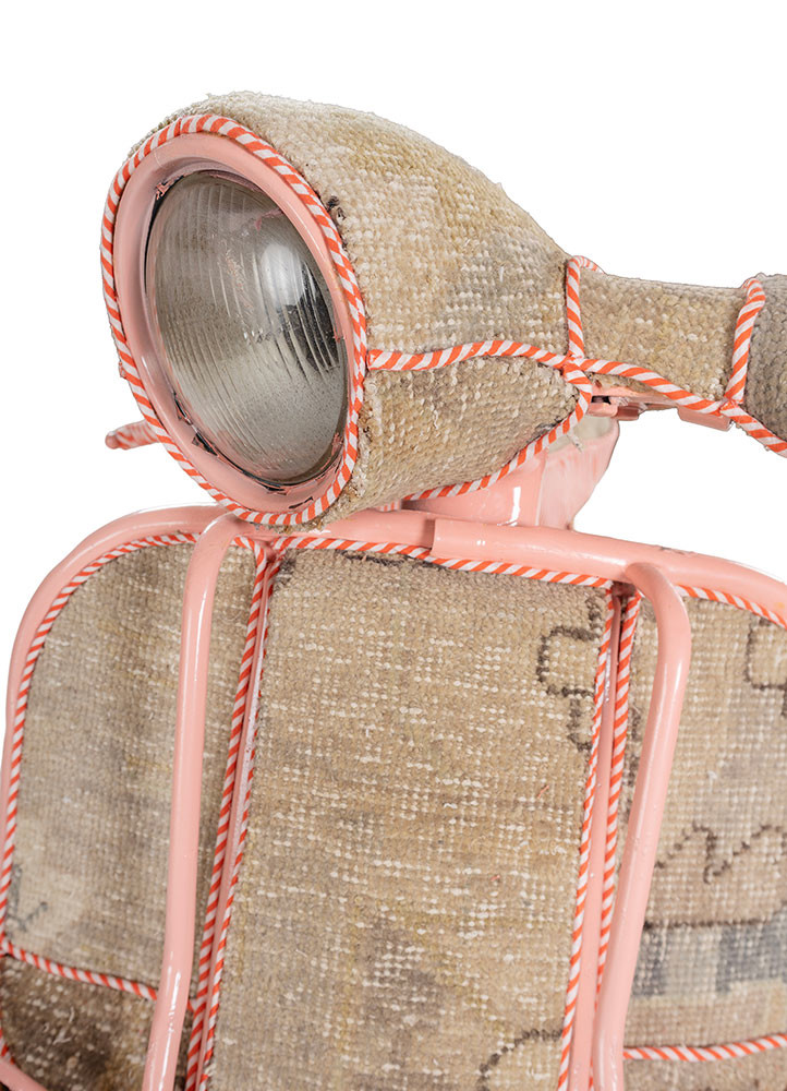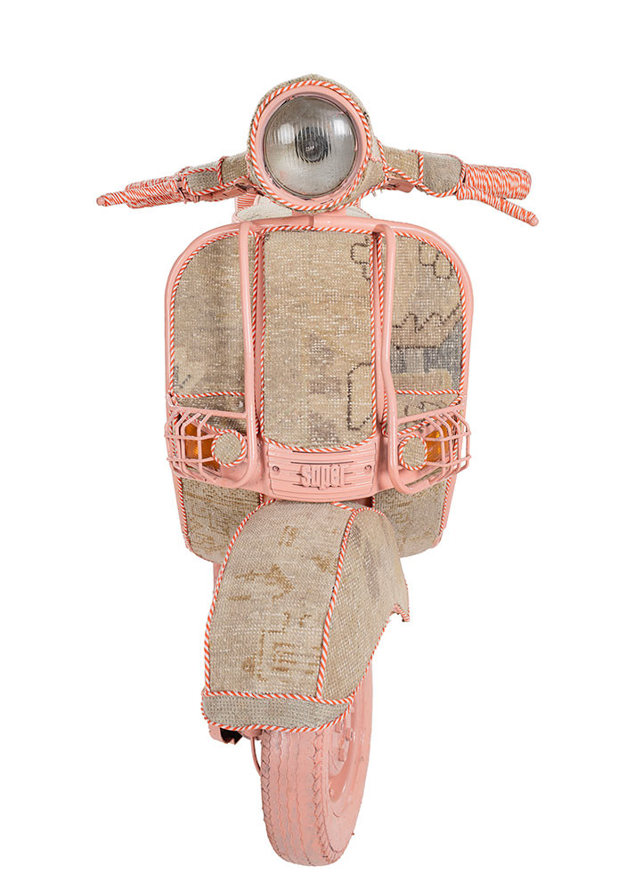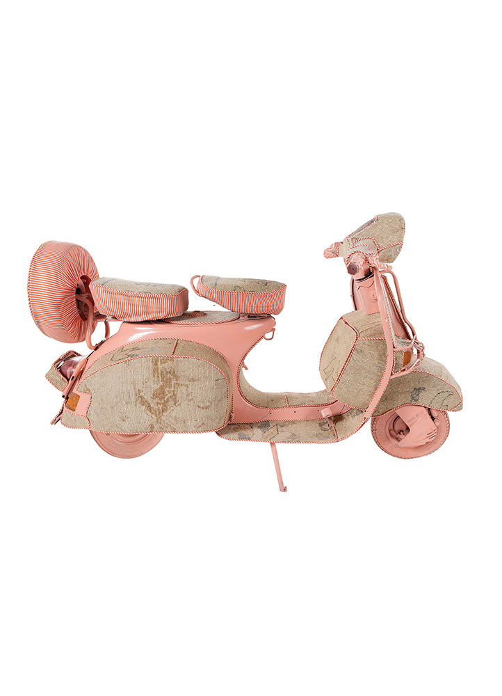 The Memoir on Wheels is a metaphoric representation of the first ride many entrepreneurs relied on during the retro era. Beautifully wrapped in vibrant, woven rugs, it stands as an art installation, evoking nostalgia for a time when ambition and style met on the open road. This display piece captures the spirit of entrepreneurship, honoring the past while inspiring future generations with its timeless design and artistic charm.