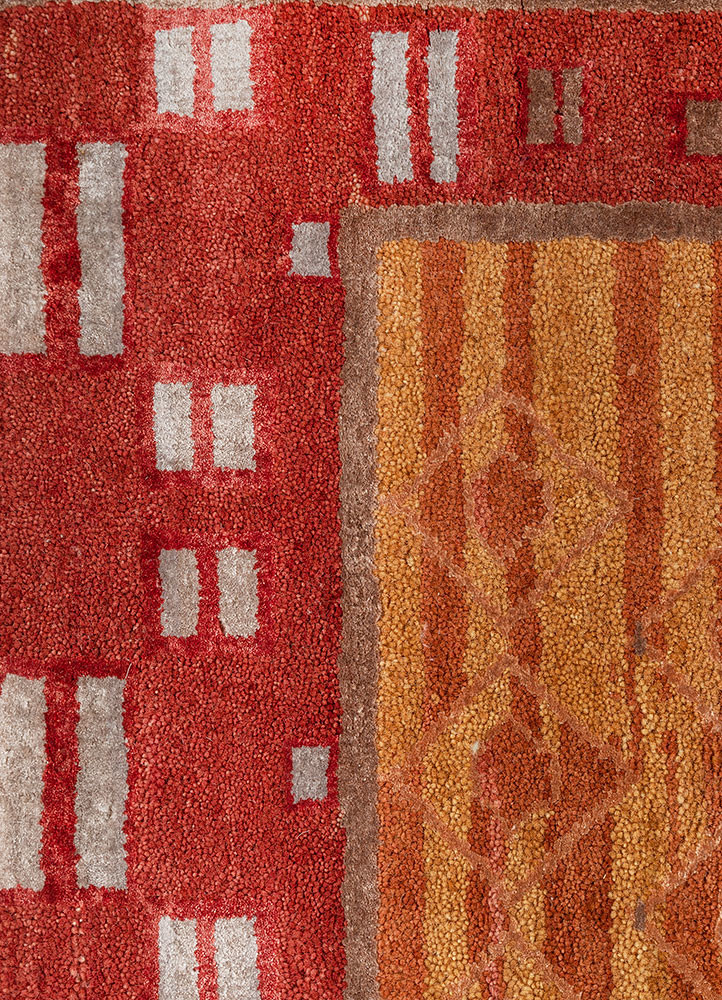 ChakravyuhA woman moves through many stages in her life. With each stage, she lets go of something and learns something new. This rug holds the quiet strength of someone who has lived many lives within one, Aanchi Devi. She was married young. Her childhood ended early, and responsibility arrived too soon. As the years went by, she often felt that in taking care of everyone, she had slowly misplaced herself. When she began weaving this Manchaha with her daughter Laxmi and her friends Muskan and Manju, she spoke about this truth—how women tend to everyone else, yet rarely pause for their own well-being. Aanchi, a master weaver, guided the younger women not only in design but also in the small, lived lessons of womanhood. In the rug, they created sections—each one marking a different stage of life. At the centre, they wove a bright yellow field. Aanchi calls it the sarso ka khet, the mustard field. For her, yellow is the colour of sunlight, strength, and divinity—the inner warmth that helps a woman face her daily battles. When the rug was complete, they named it “Chakravyuh.” In ancient lore, it is a circular battle formation. Here, it becomes a metaphor for the challenges a woman walks through and the strength she carries to move through every ring of life.