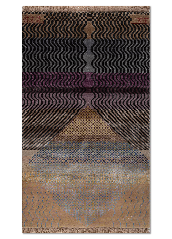 Do PehluV.P. Singh’s new Manchaha begins with his familiar diamond medallion, but soon the weaving took its own direction. Dark, wave-like lines rose around the form, like a shadow unfolding by itself. The contrast made the colors beside them glow even brighter, as though the pattern was defining itself through light and dark. Without planning it, V.P. found himself creating positive and negative space. He said, “I was making just one design…the other one emerged by itself.” Inspired by this natural duality, he titled the rug “Do Pehlu" (Two Sides).