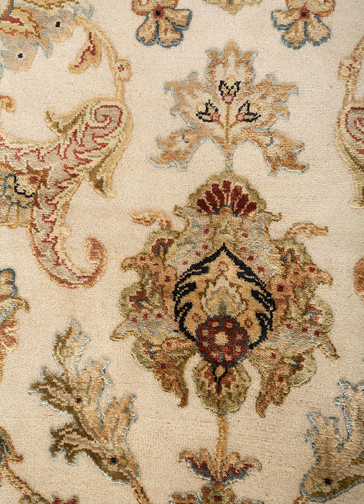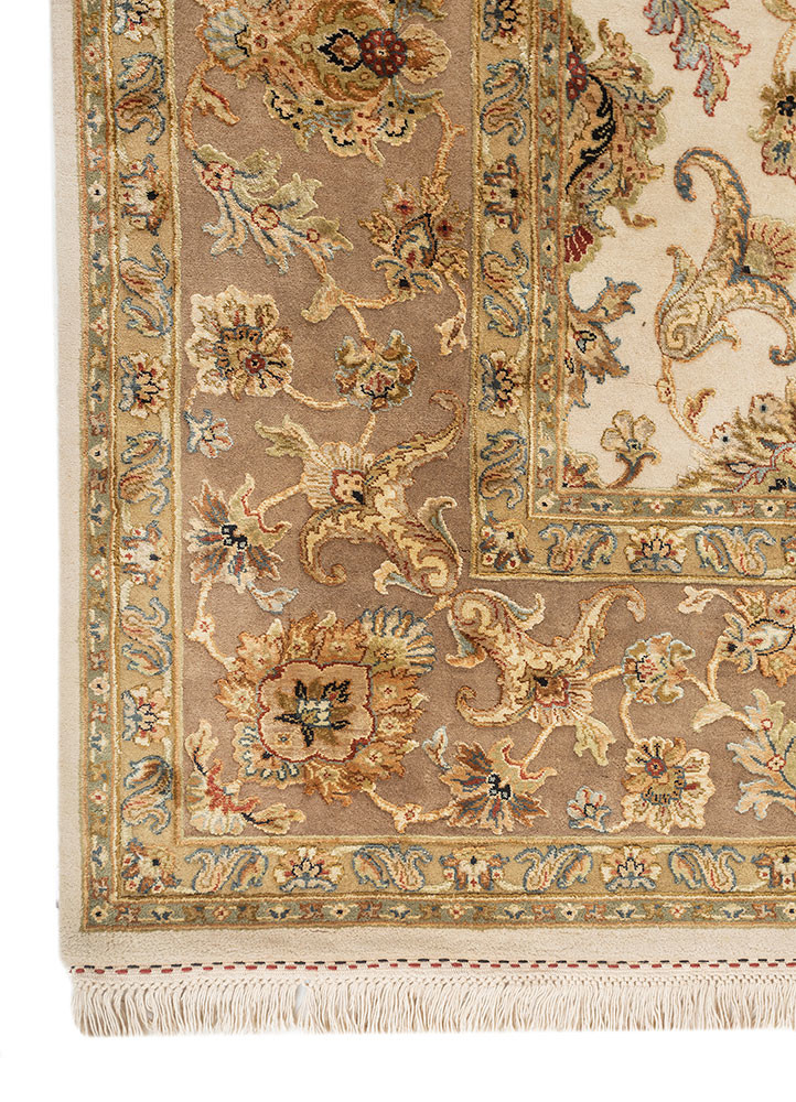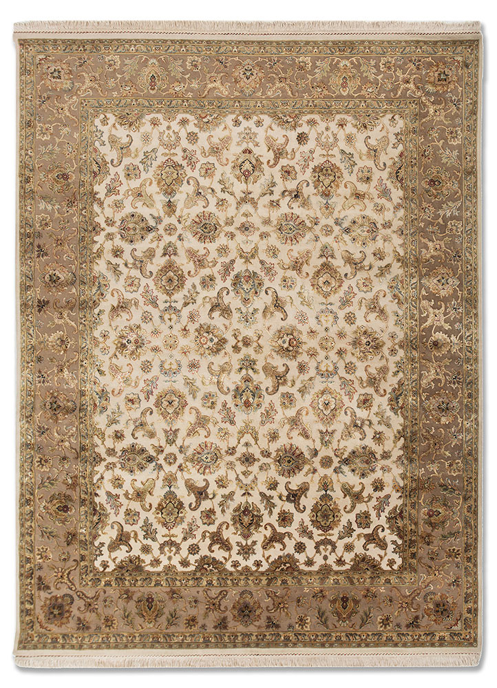 Hand-knotted out of wool and silk, the timeless rugs from the Aurora collection feature traditional oriental motifs, patterns, and designs. These rugs with floral motifs in traditional border design, as found in oriental carpets, preserve the design and weaving skills from another era. Available in a spectrum of colors and shades, with a pearl-like sheen inspired from natural gemstones, the Aurora collection will bring life to any space with its beauty and vividness.